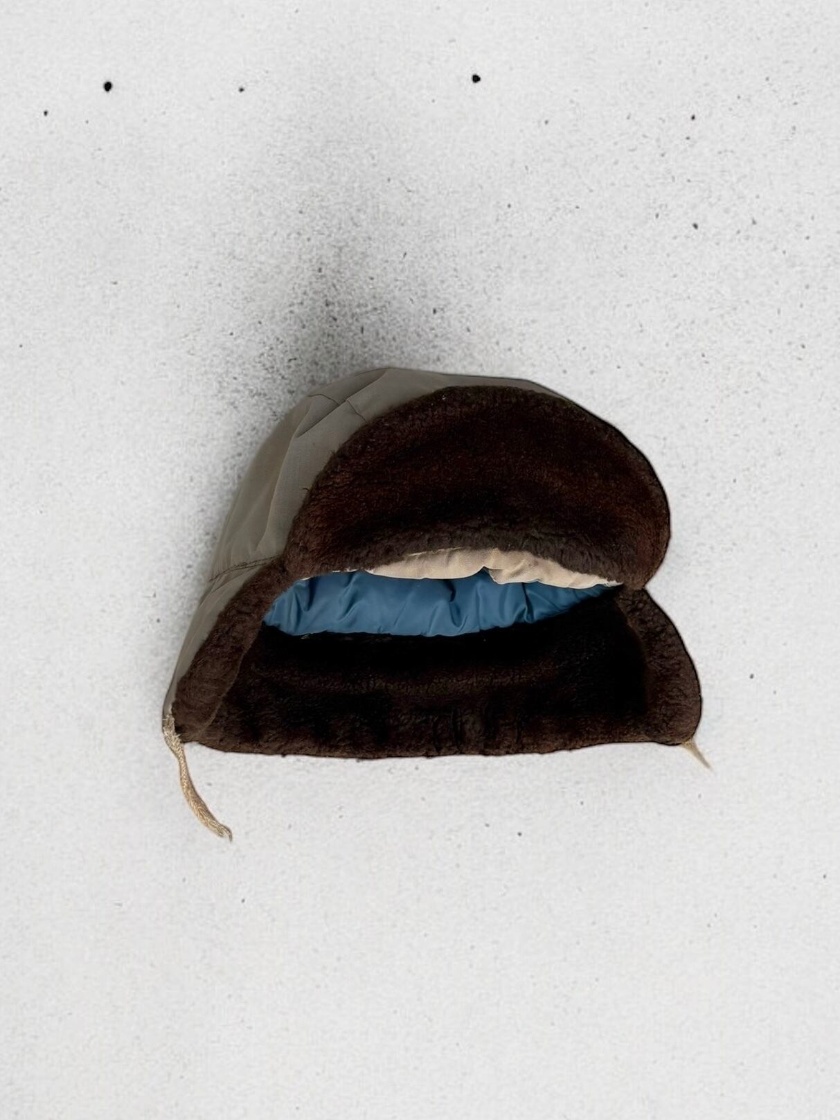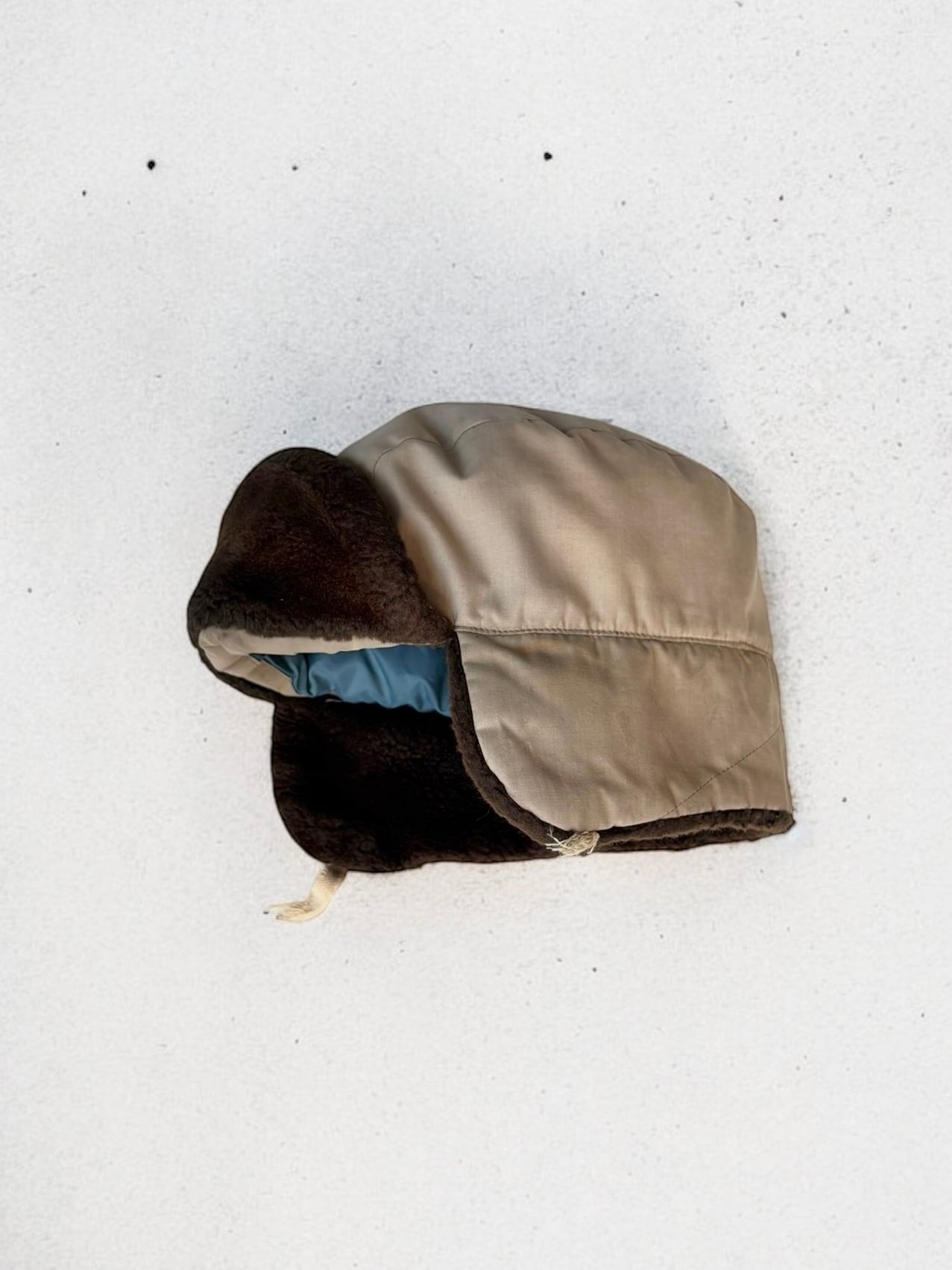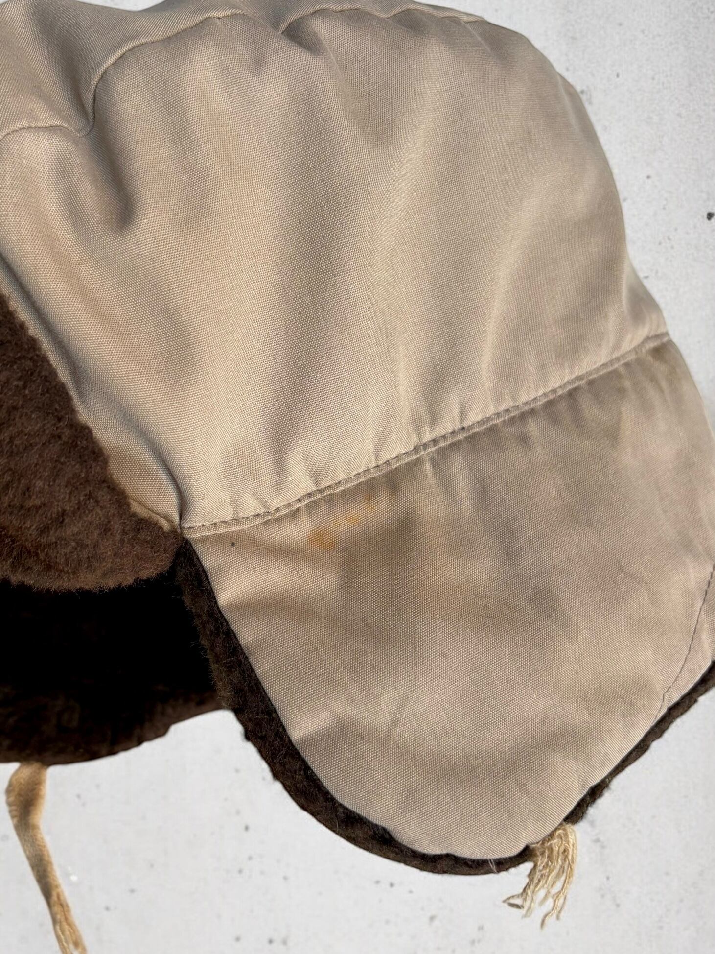 またイヤーフラップの先端に付いている紐が切れています。