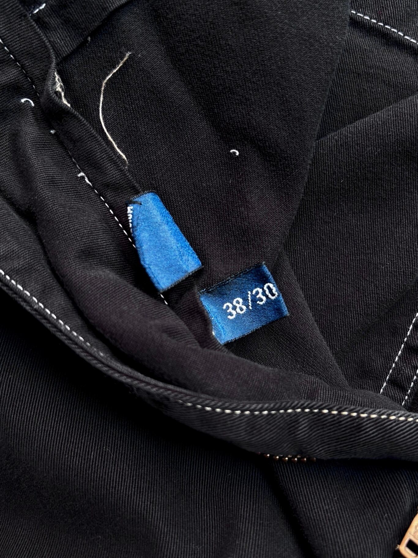 ウエスト38インチ以上のビックサイズのものを使用しているので、極太のシルエットが楽しめます。