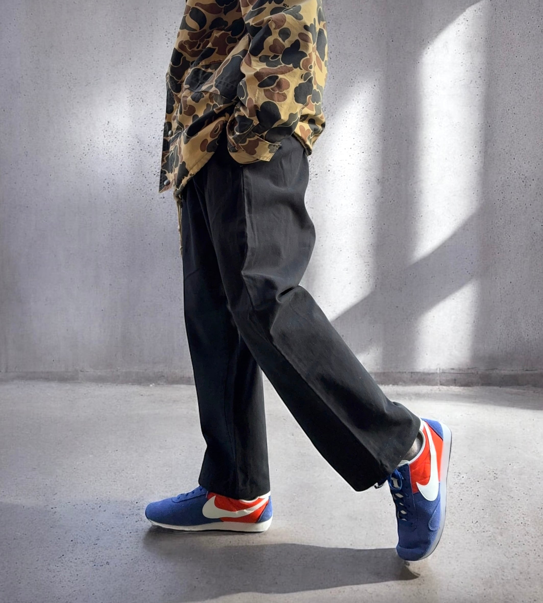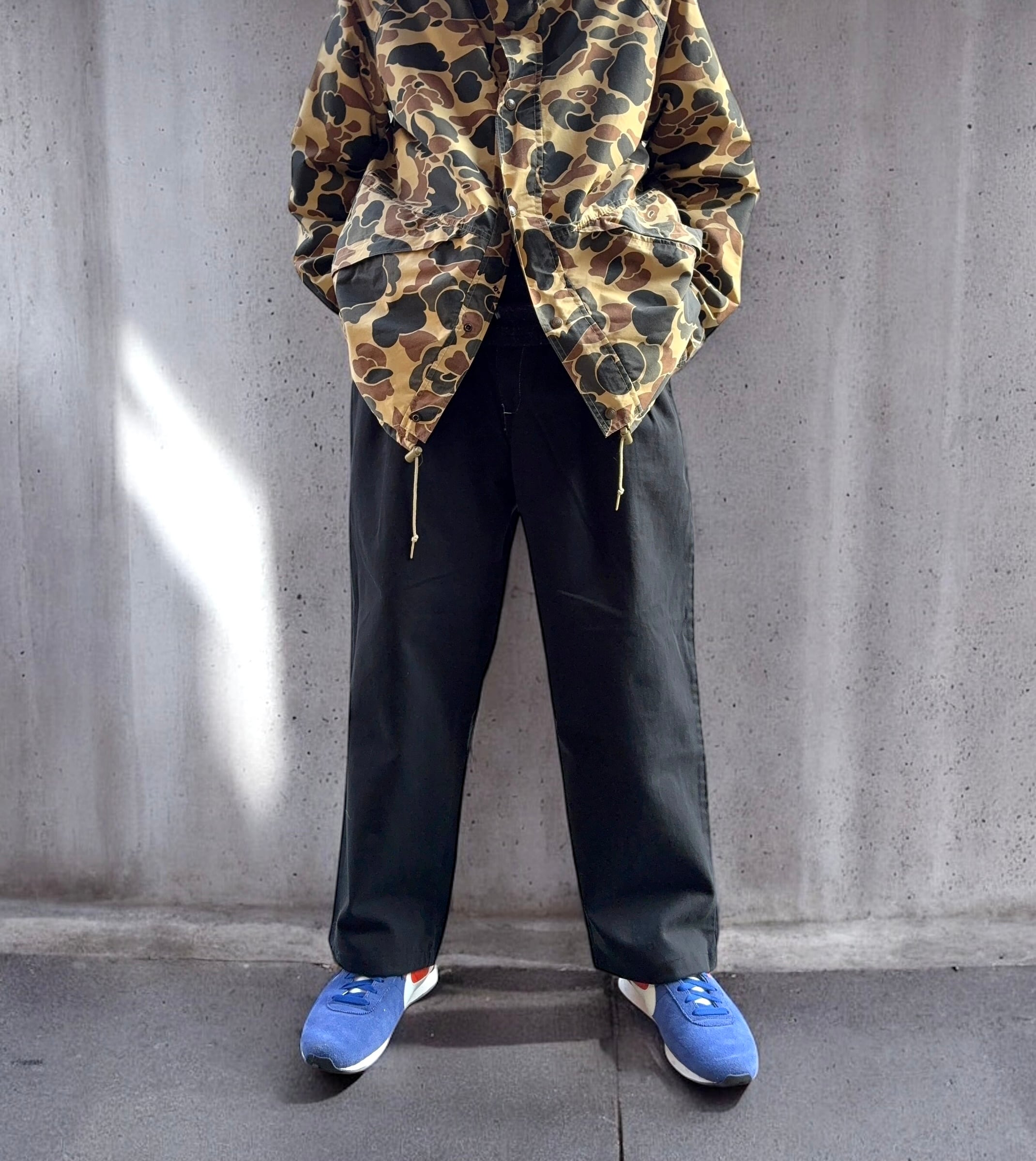 ウエスト38インチ以上のビックサイズのものを使用しているので、極太のシルエットが楽しめます。