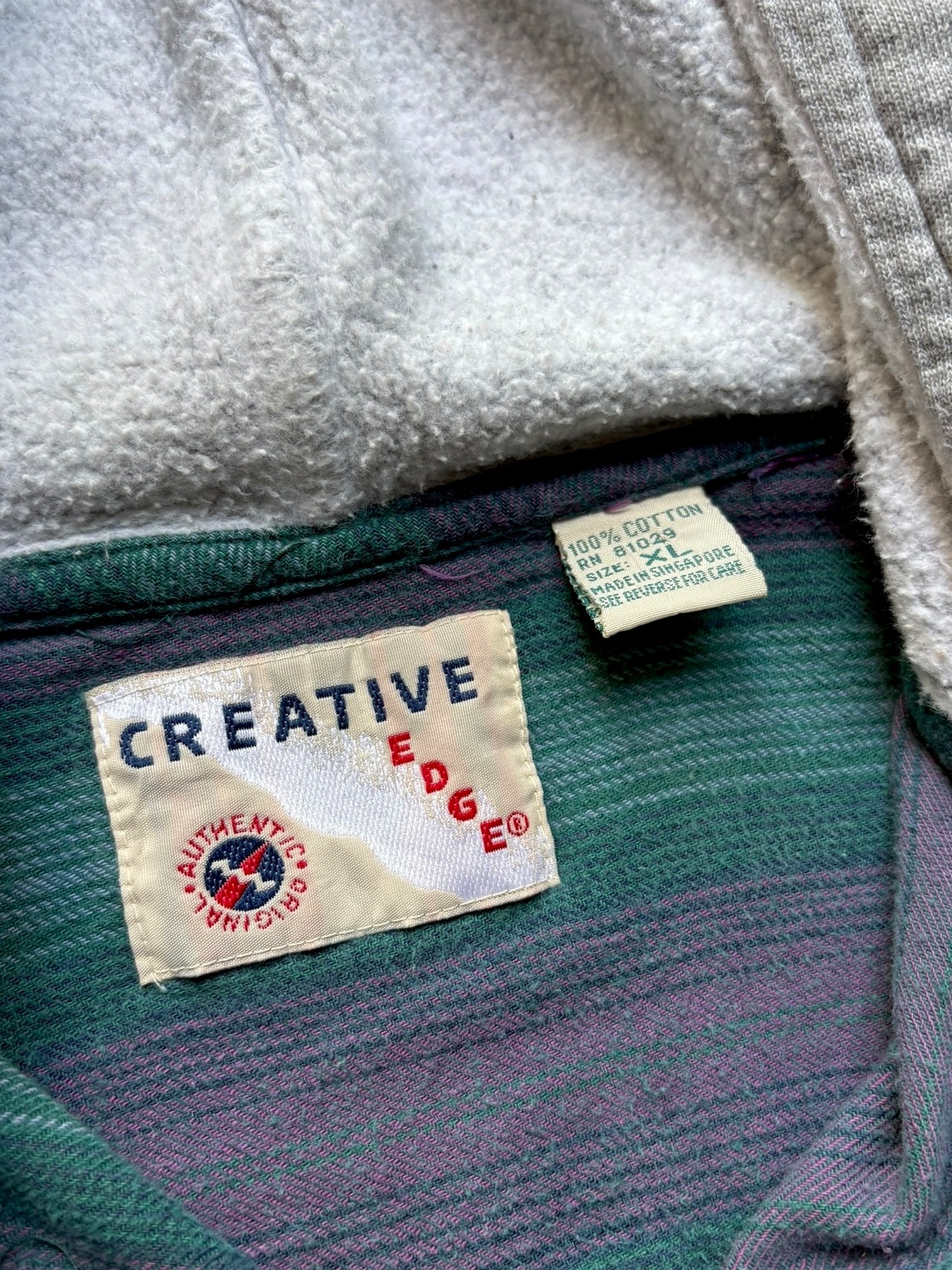 90年代、”CREATIVE EDGE”のフード付きフランネルシャツ。