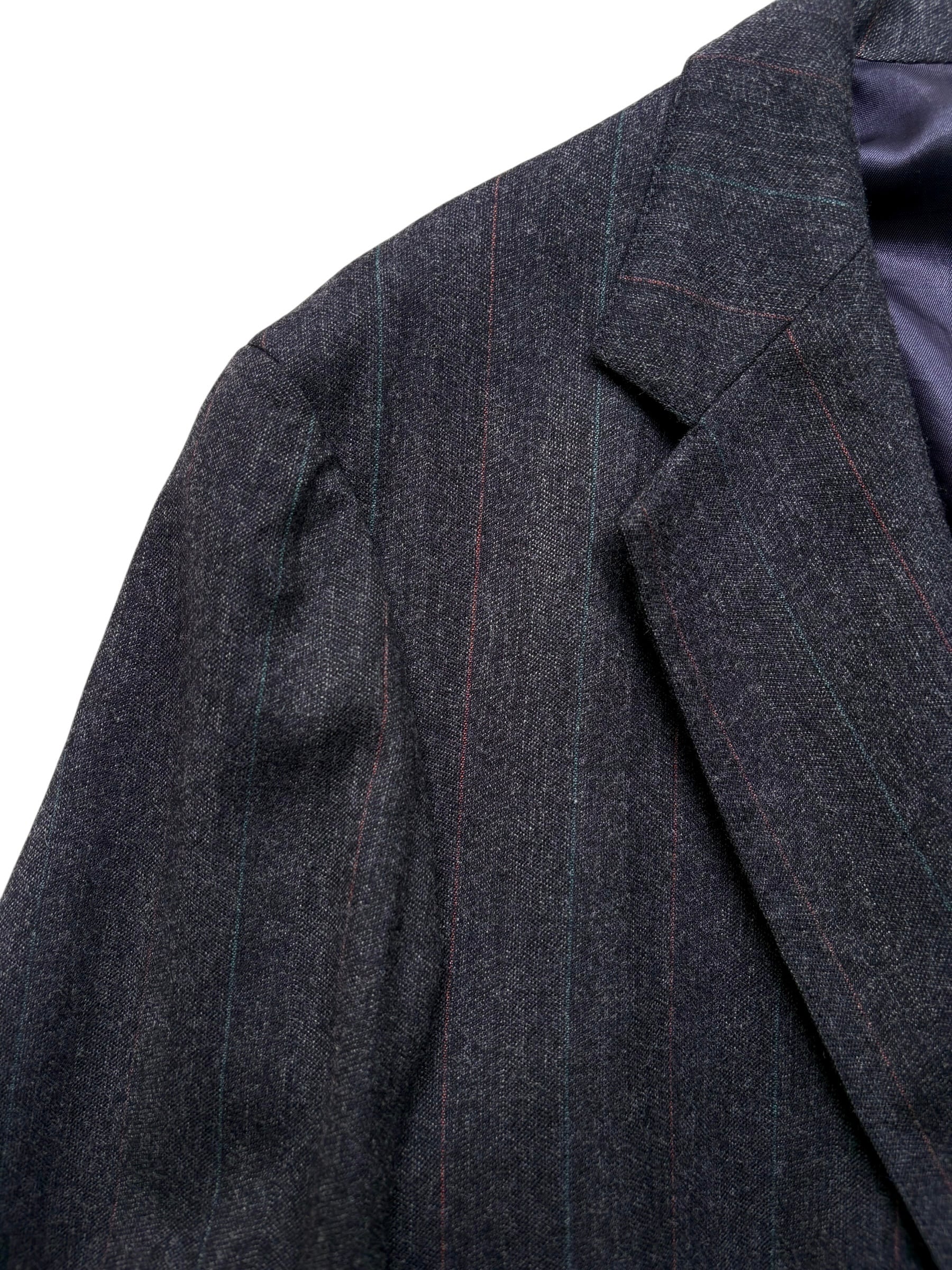 生地や仕立てのクオリティは言わずもがな、グレーベースにオレンジ×グリーンのさりげないストライプ柄が洒落てます◎