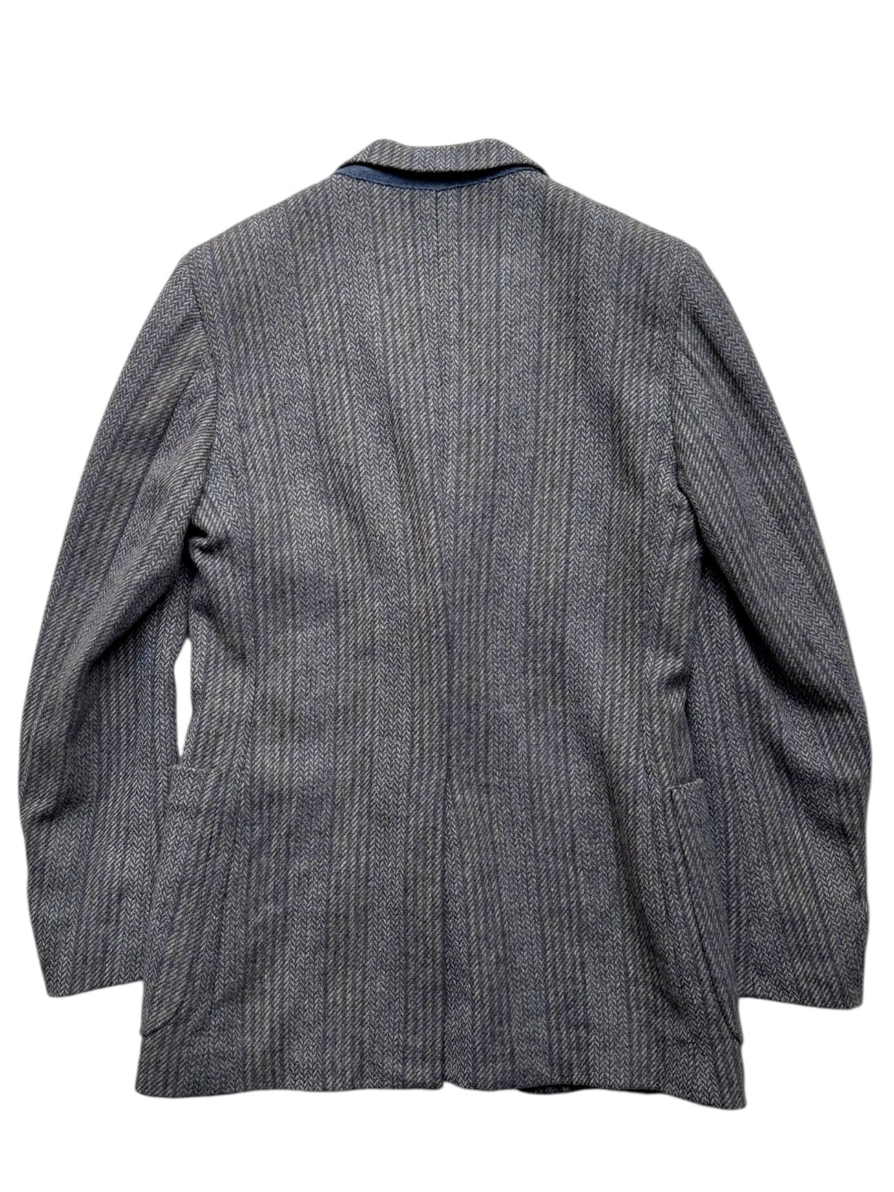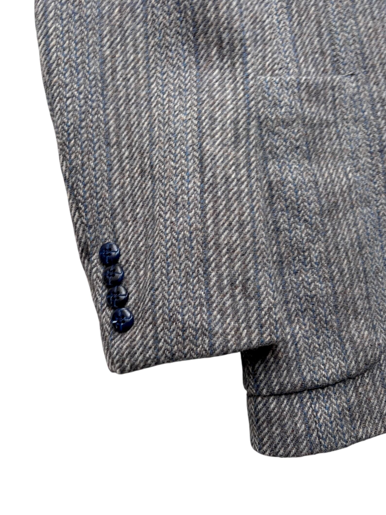 グレー×ブラウン×ホワイトにブルーの糸を使用したヘリンボーン生地。