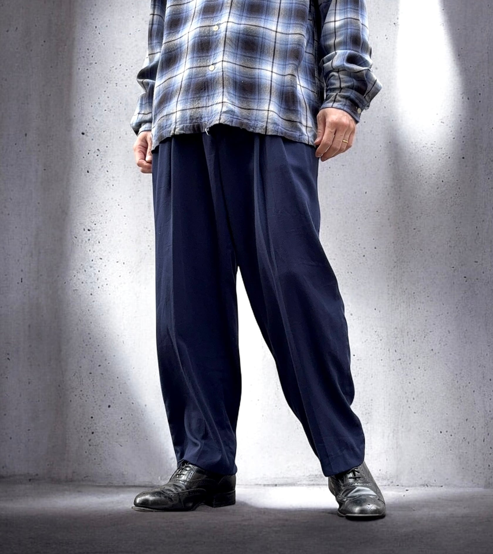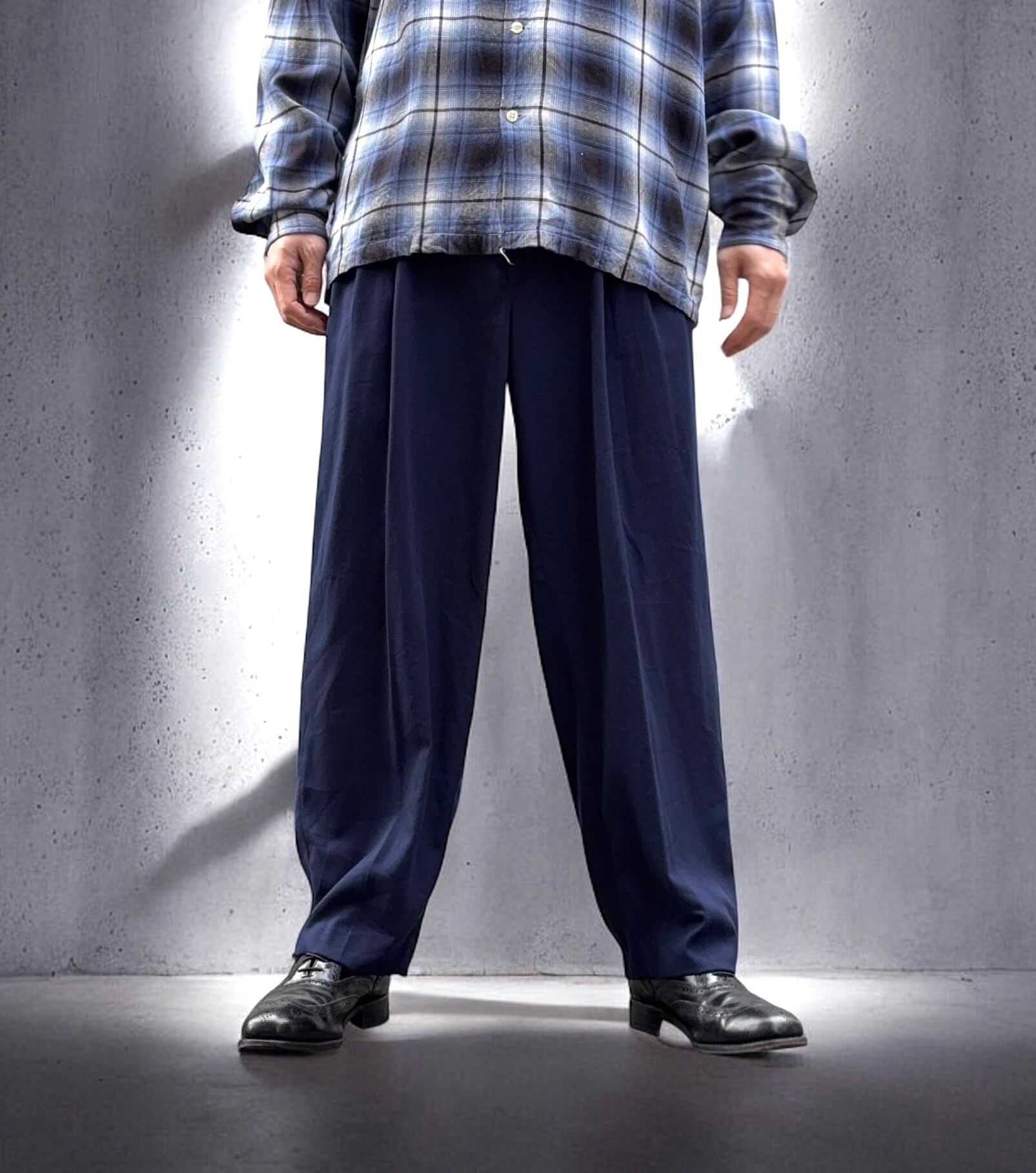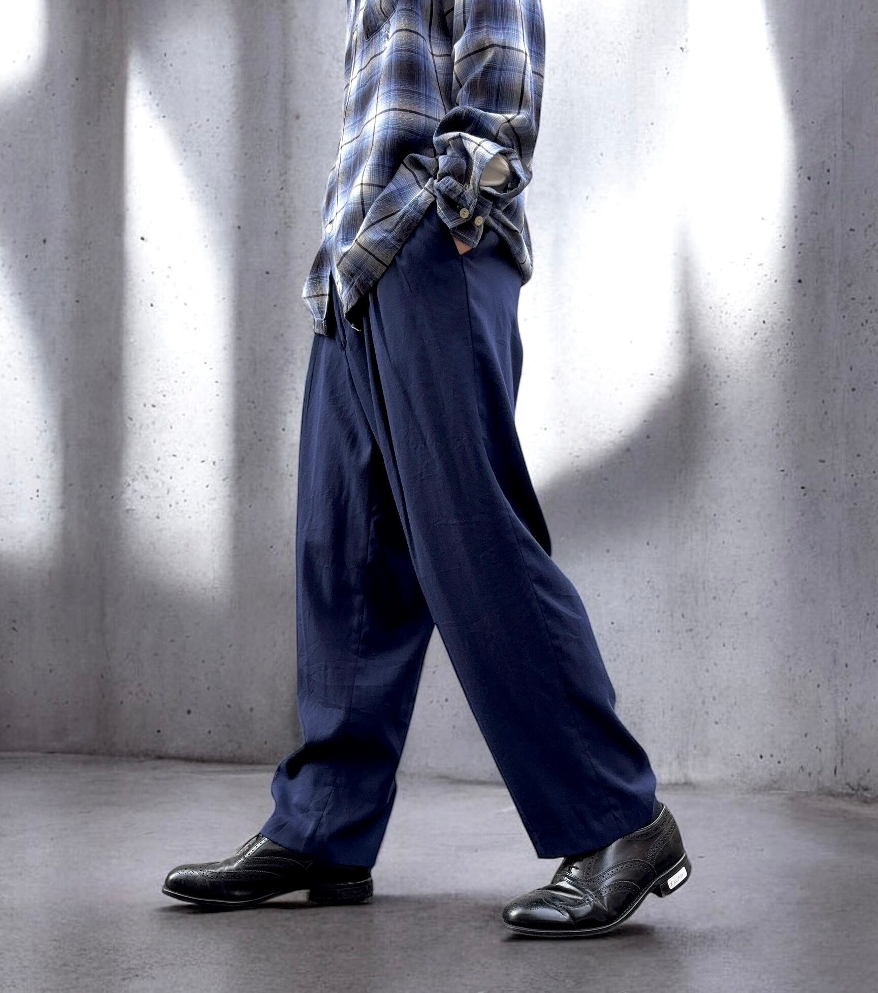 このブランドの代名詞とも言える「3タック」入りのワイドスラックス。