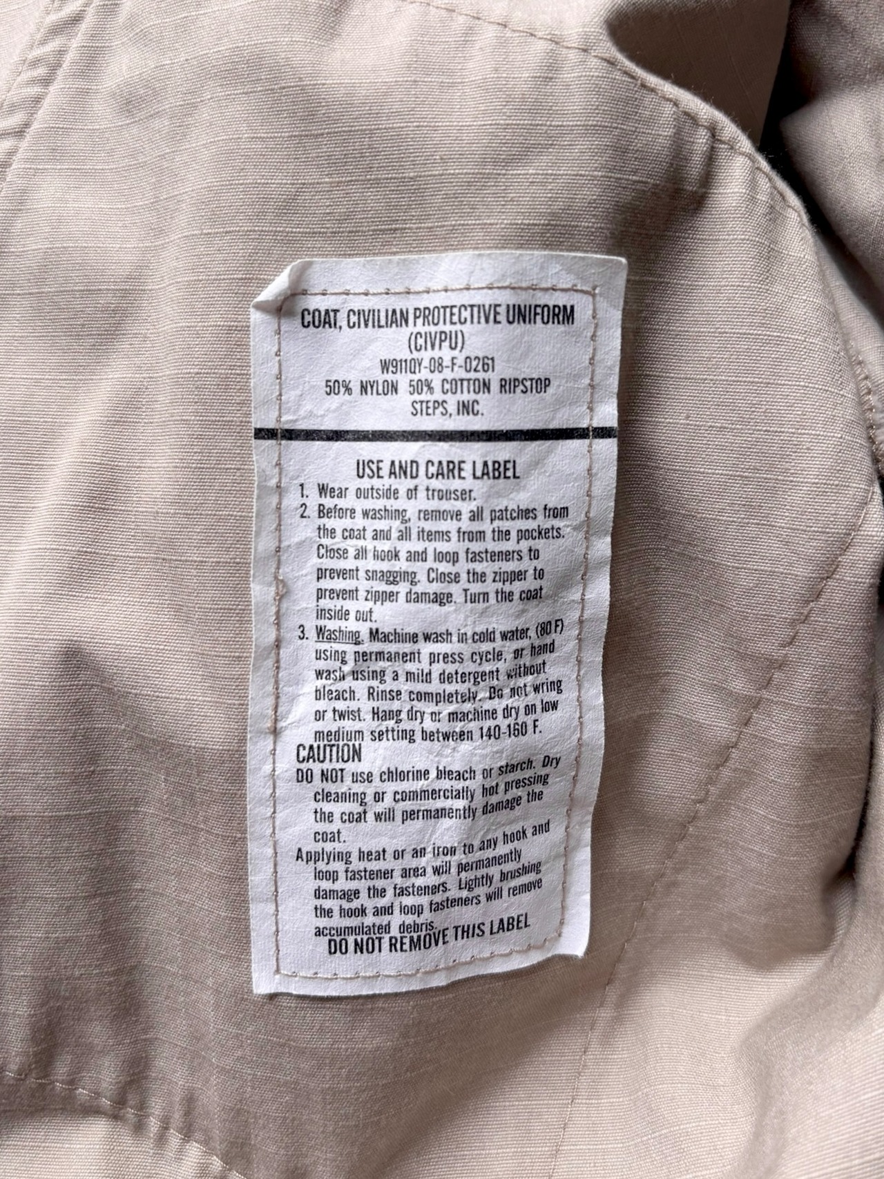 2008年製、US.ARMYのCIVPU (CIVILIAN PROTECTIVE UNIFORM) JACKET。