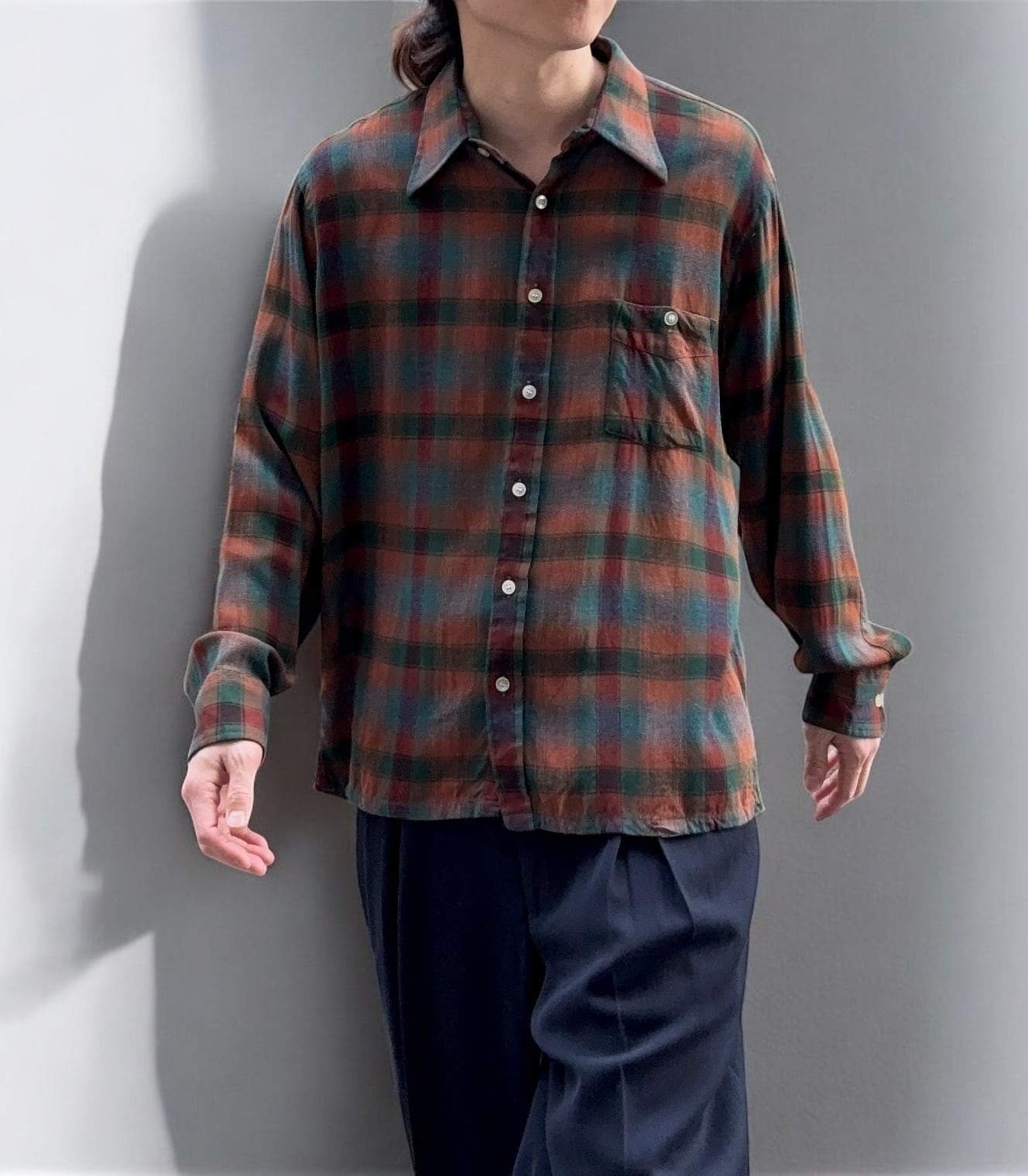 60年代頃、ビンテージのシャドウチェックレーヨンシャツ。