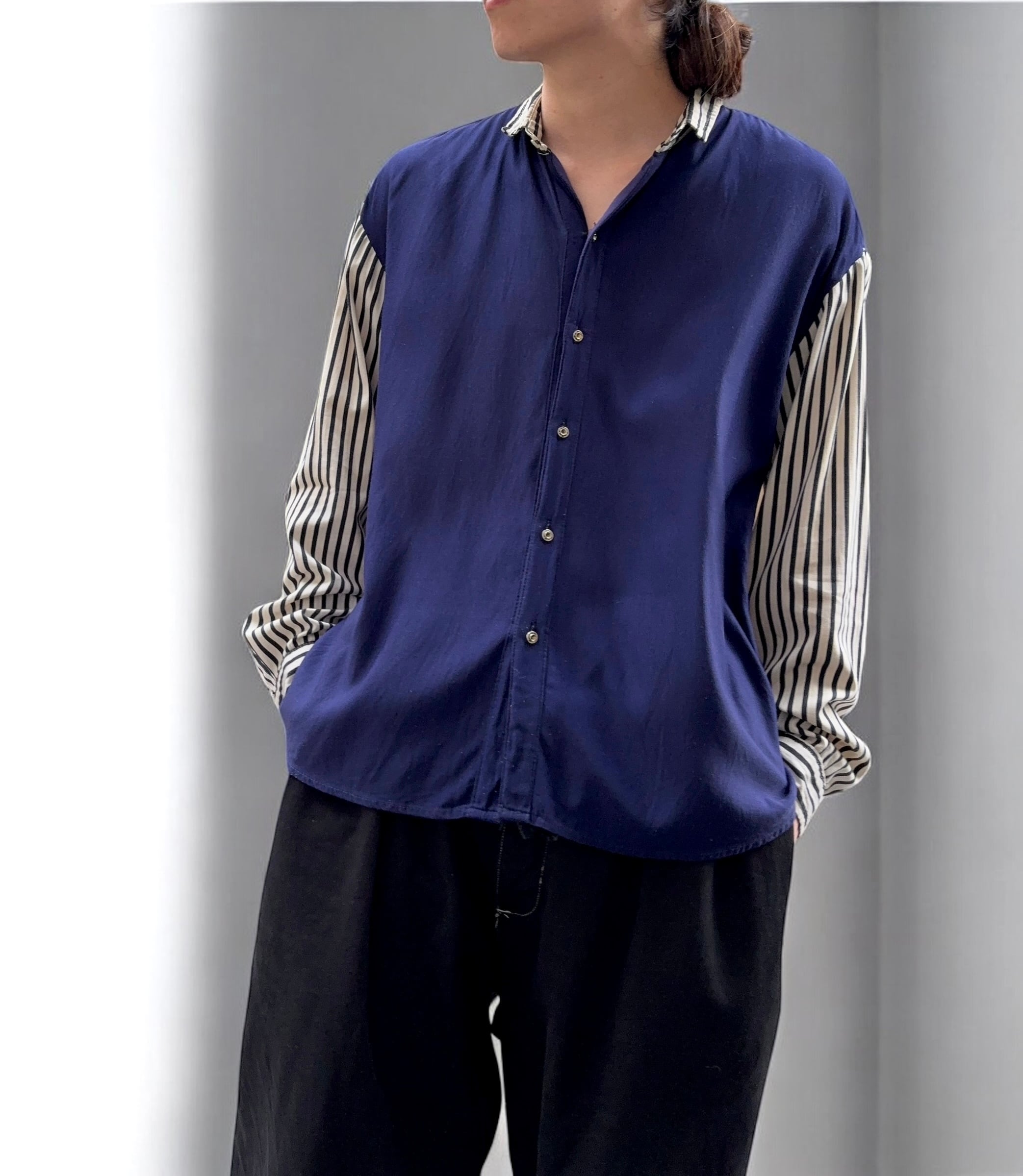 Vintage Border Switching Design Shirt