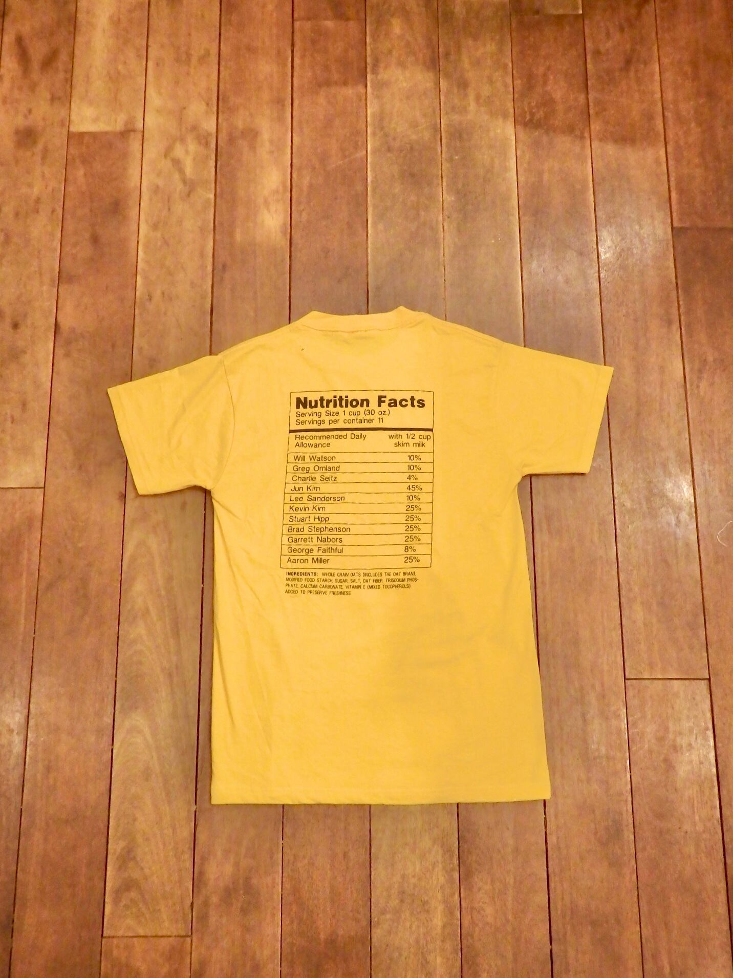 バックには栄養成分表示と書かれた欄にメンバーの名前が記載されており、とてもユニークなデザインです。