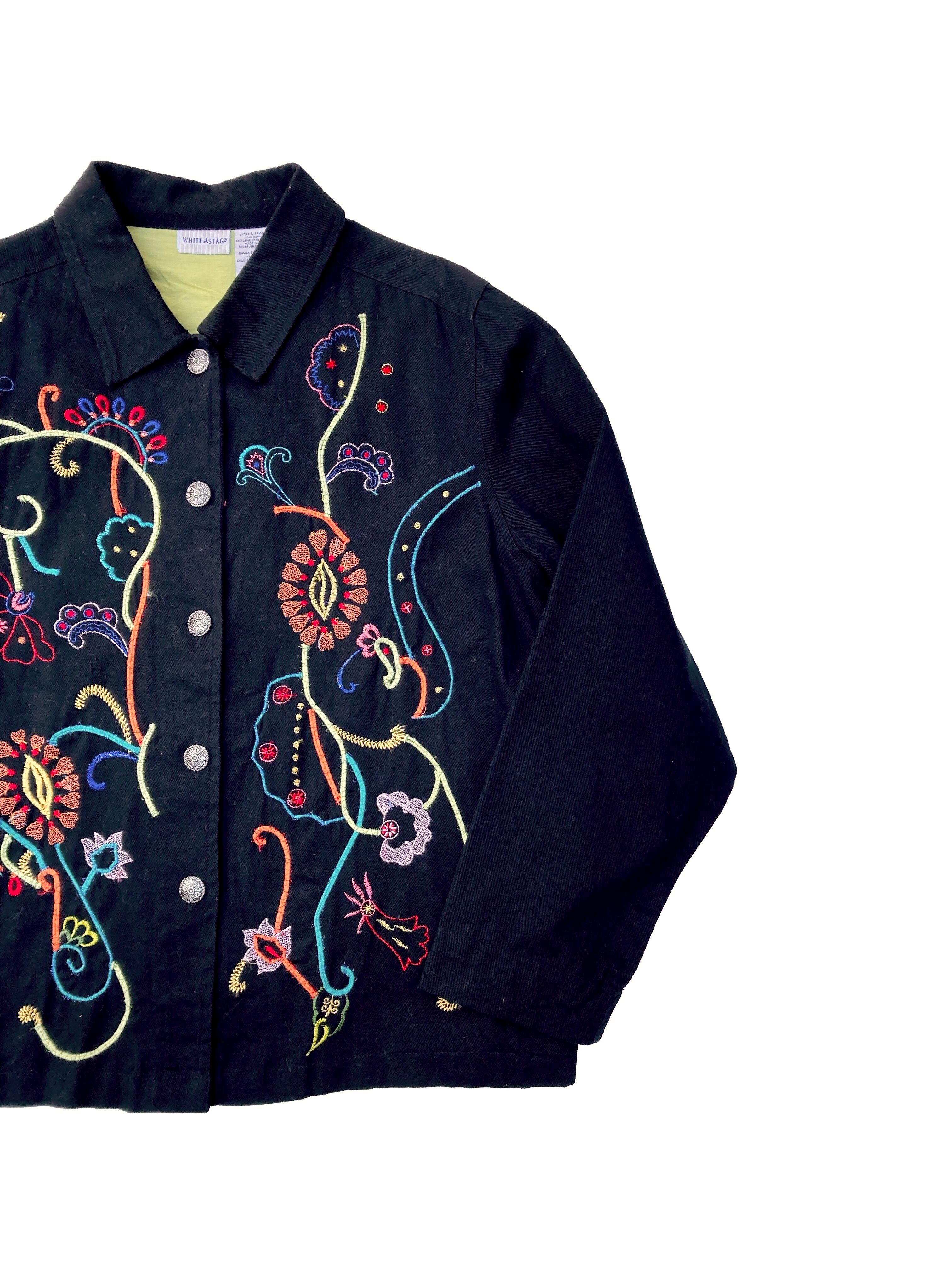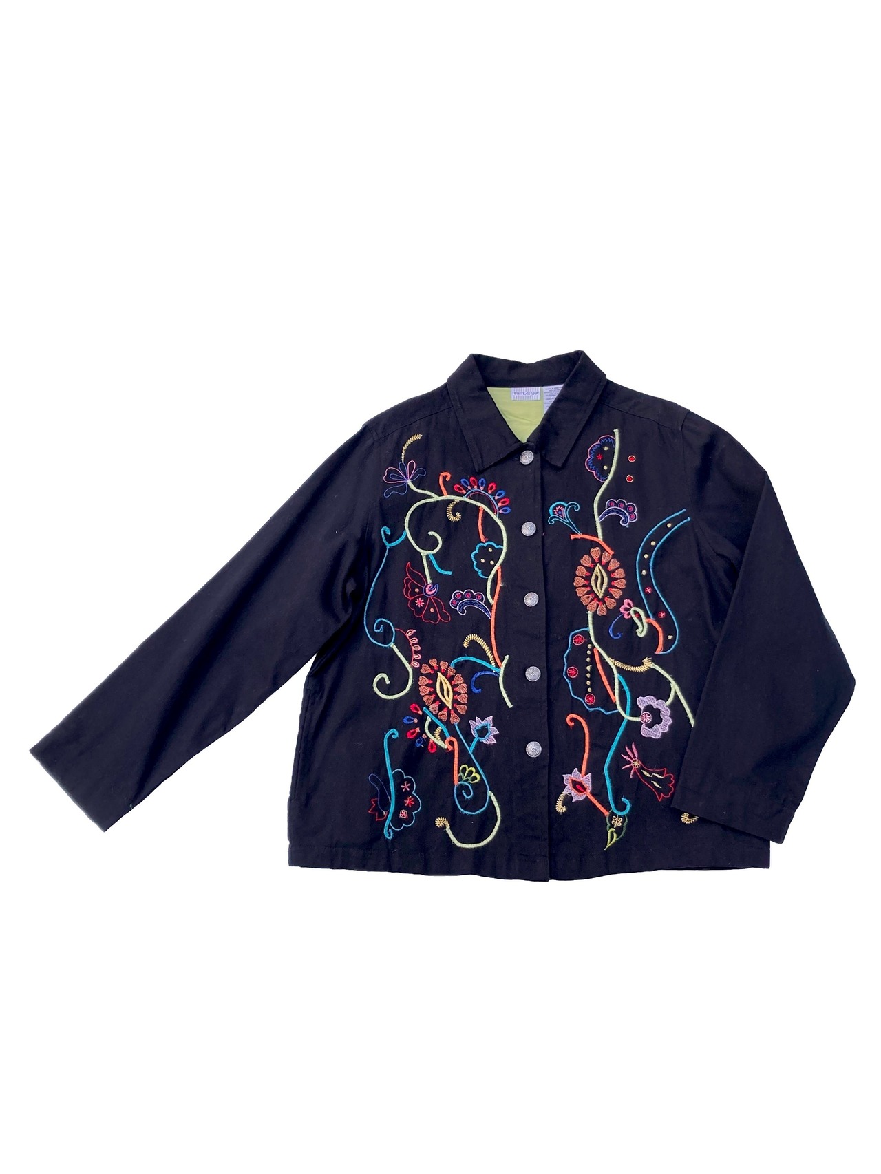 ブラックのボディに華やかな刺繍が特徴的なジャケット。
